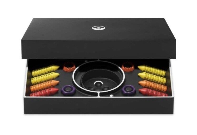 Inside the toolbox, you’ll find stackable damage counters that clearly indicate how much damage a Pokémon has taken, three-dimensional Poison and Burn markers, and metal orbs that take the place of Pokémon coins. At the center of the toolbox, you’ll be able to roll these metal orbs down a small chute—if the orb lands in a white-bordered hole, it’s treated as heads, and if it lands in a black-bordered hole, it’s treated as tails. When playing with Pokémon Trading Card Game Classic, you’ll never need to scrounge for dice or coins.
